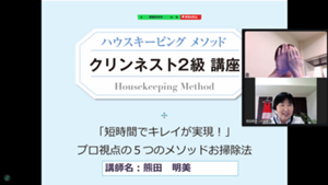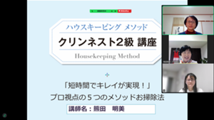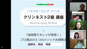 ・具体的に自分のお掃除プランを見直すことができてよかったです。(講師の進行)自分ができていないお掃除場所の掃除のやりかたを具体的にアドバイスしてくださり、助かりました。(Zoom開催)お家にいながら学べるので助かります。(NK様)
