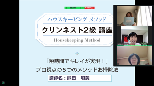 2024年12月は、オンライン(zoom)で「クリンネスト2級認定講座」を開催!師走は時間を有効活用できる自宅受講が人気。日本の風習で大掃除を12月にする家庭も多いため、お掃除の需要は高まります。 ↑ご夫婦で2名分の受講料をお支払いいただき、1画面で受講してくださいました。 ▼2024年12月に受...